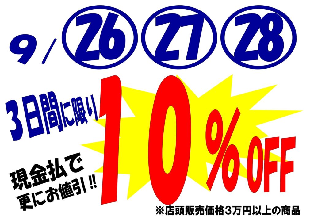 26日・27日・28日は現金のお支払いがお買い得😆😆